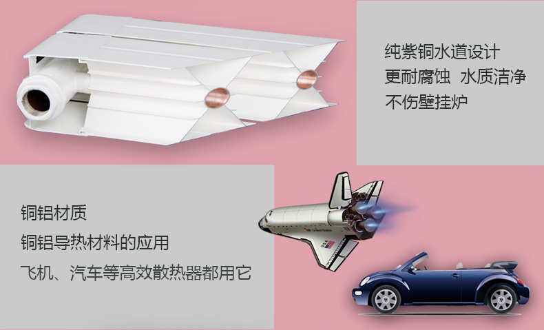 暖氣片。其外觀美觀大方。散熱器與水接觸的部分即水通道全部為銅管,通過鋁材與銅管緊密結(jié)合,具有穩(wěn)定的導(dǎo)熱性能。鋁材的作用是擴(kuò)大暖氣片散熱面積,提高散熱效果。由于暖氣片內(nèi)的水道均由銅管構(gòu)成,所以其抗氧化腐蝕能力強(qiáng),幾乎適合用于所有的采暖系統(tǒng)。