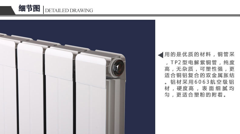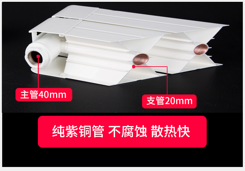 1、99.9%純度電解紫銅管,導(dǎo)熱性能好,節(jié)能,不腐蝕,是非常耐用的散熱器;
